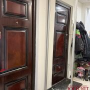 входная металлическая дверь, стяжка по всей квартире с ламинатами и плиткой, натяжные потолки.