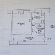 Общая площадь - 38.07 м2, жилая - 17.35 м2. Потолки 3.5 метра. Стены - 60см. Второй этаж. Санузел раздельный.
