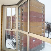 Застеклённая лоджия, панорамные окна, прекрасное место для отдыха с чашкой какао.