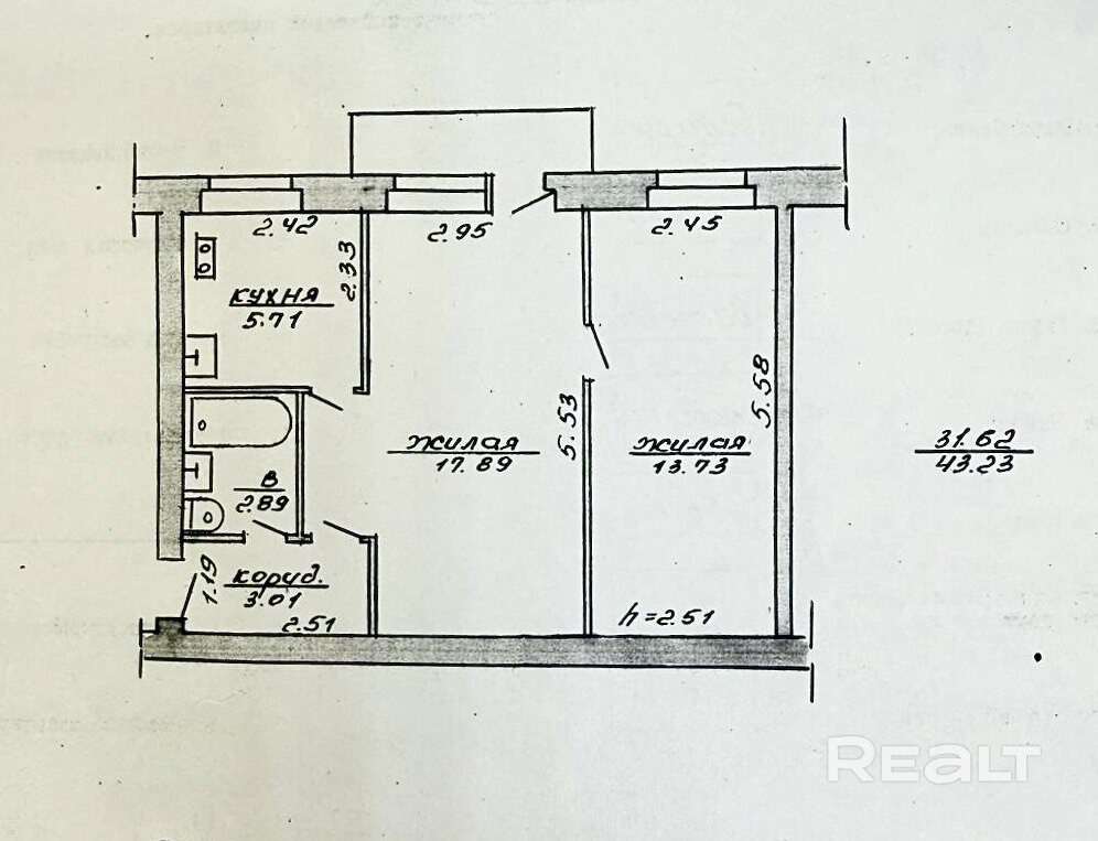 Общая площадь 43.23 м