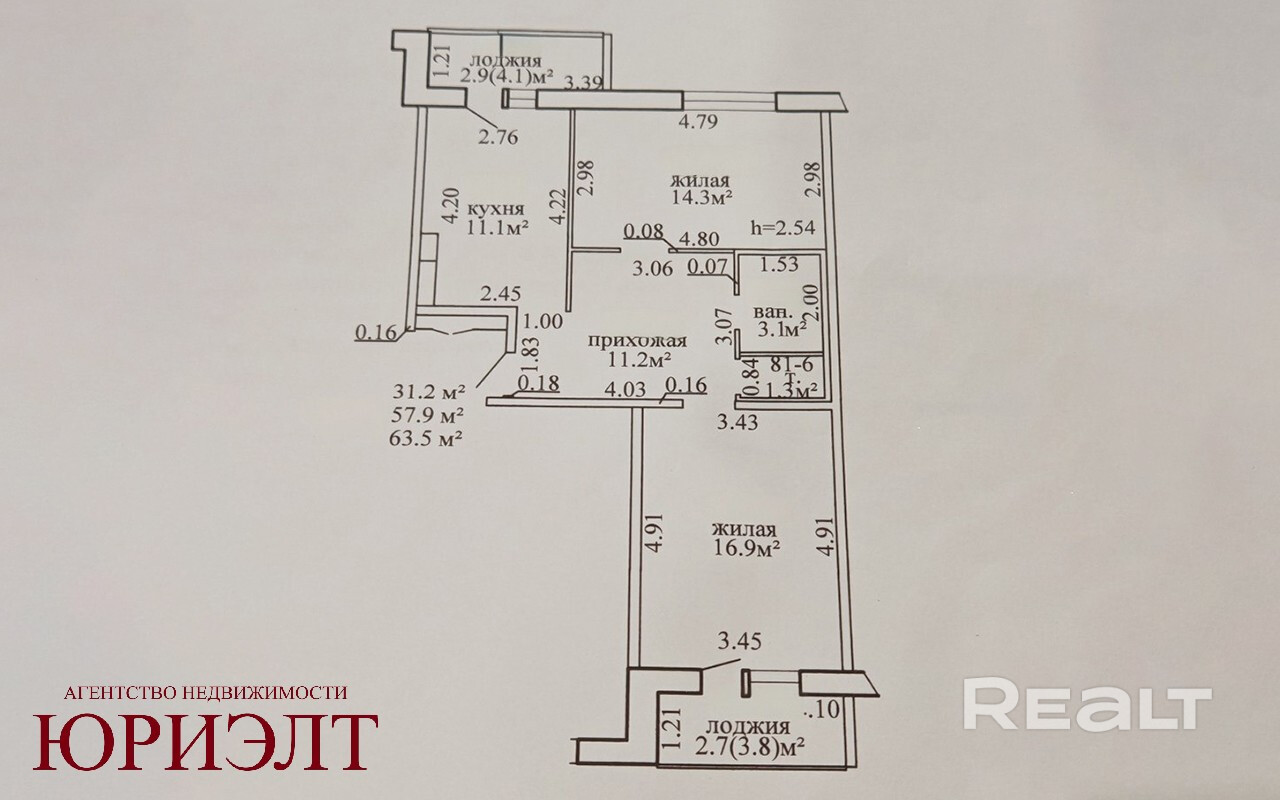 Общая площадь 63.5 м2, жилая 31.2 м2, просторная кухня 11.1 м2 — всё, чтобы вы чувствовали себя комфортно и удобно.