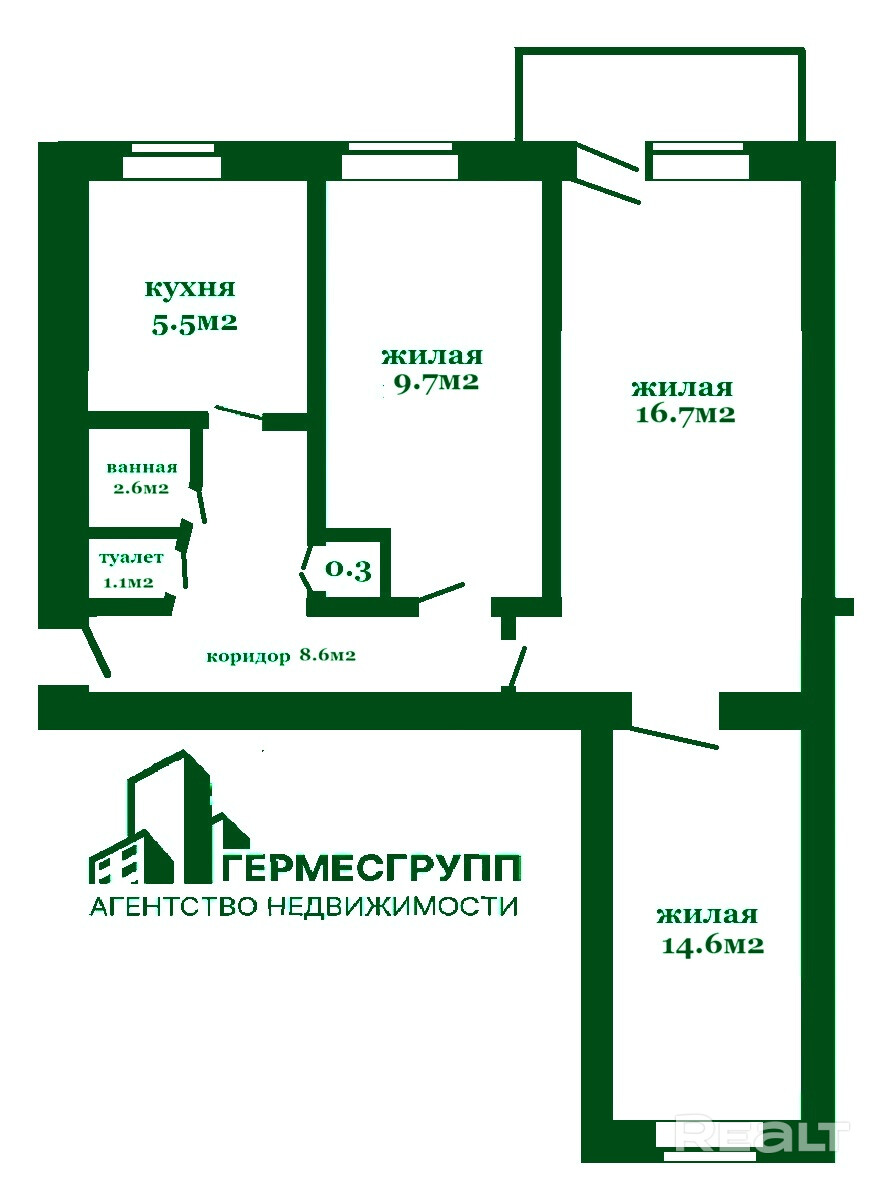 ООО "Агентство недвижимости ГермесГрупп». УНП 193776843. Лицензия Министерства Юстиции Республики Беларусь N 02240/487 от 07.08.2024 г.