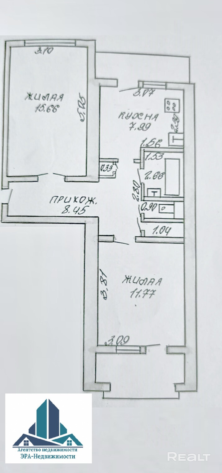 Двухкомнатная квартира (48,8 м2) с удобной планировкой