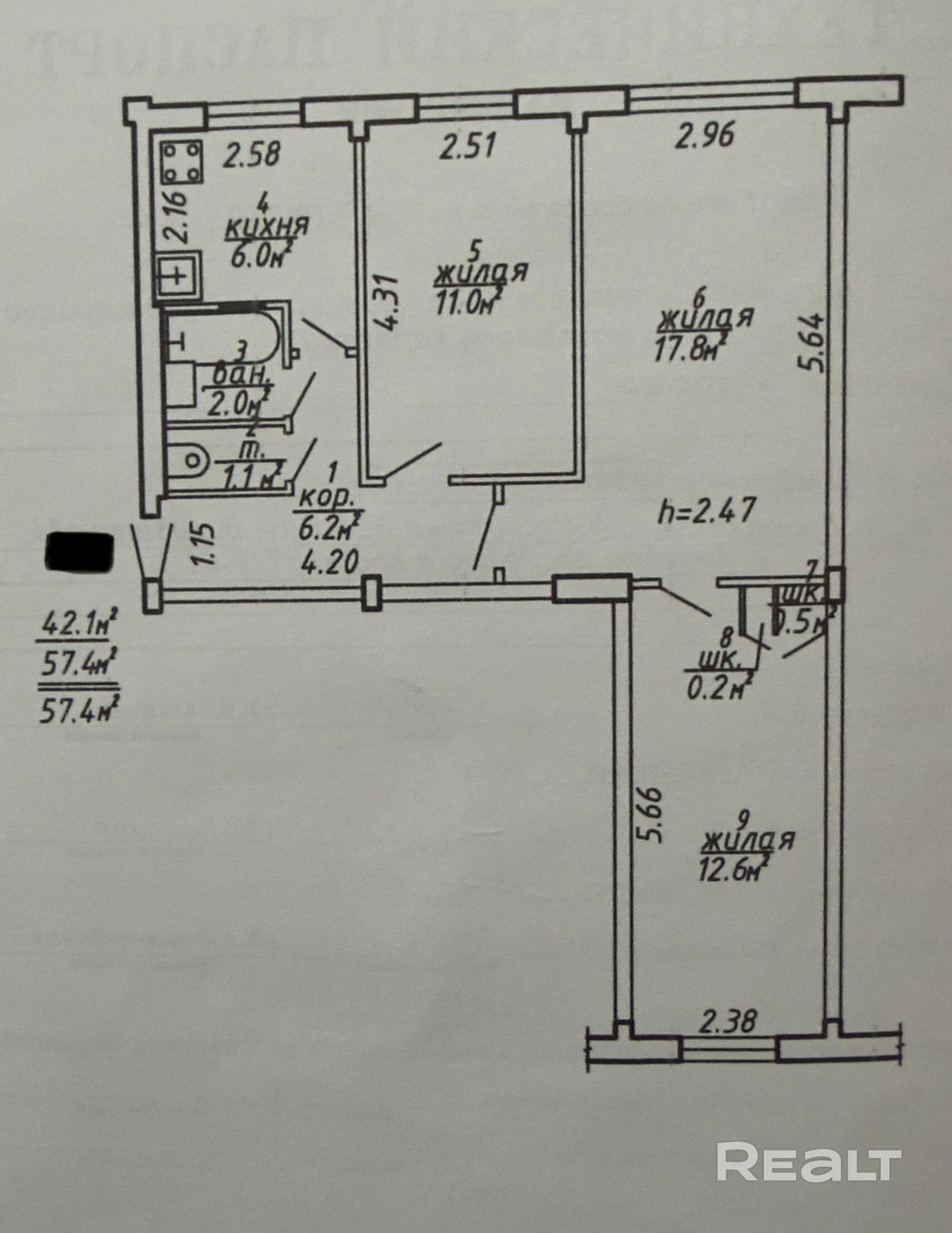 57.4 м²