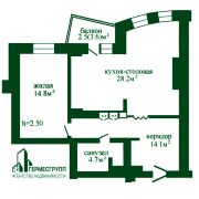Площадь по СНБ 64,7м2, общая 62,2 м2, жилая с кухонным оборудование 28,2 м2.