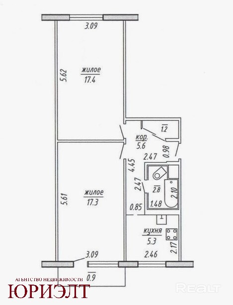 Квартира достаточно просторная, не угловая, раздельные комнаты по 17,4 и 17,3 м2 выходят окнами на аллею в парке и во двор.