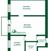 Общая площадь квартиры составляет 43,2 м2, жилая — 32,2 м2, кухня — 5,4 м2.