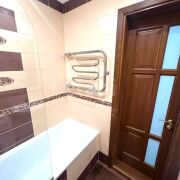 Ремонт в квартире был выполнен с использованием высококачественных материалов. На полах керамическая плитка и ламинат, на стенах дорогие импортные обои. Потолки оштукатурены и окрашены, качественная сантехника.