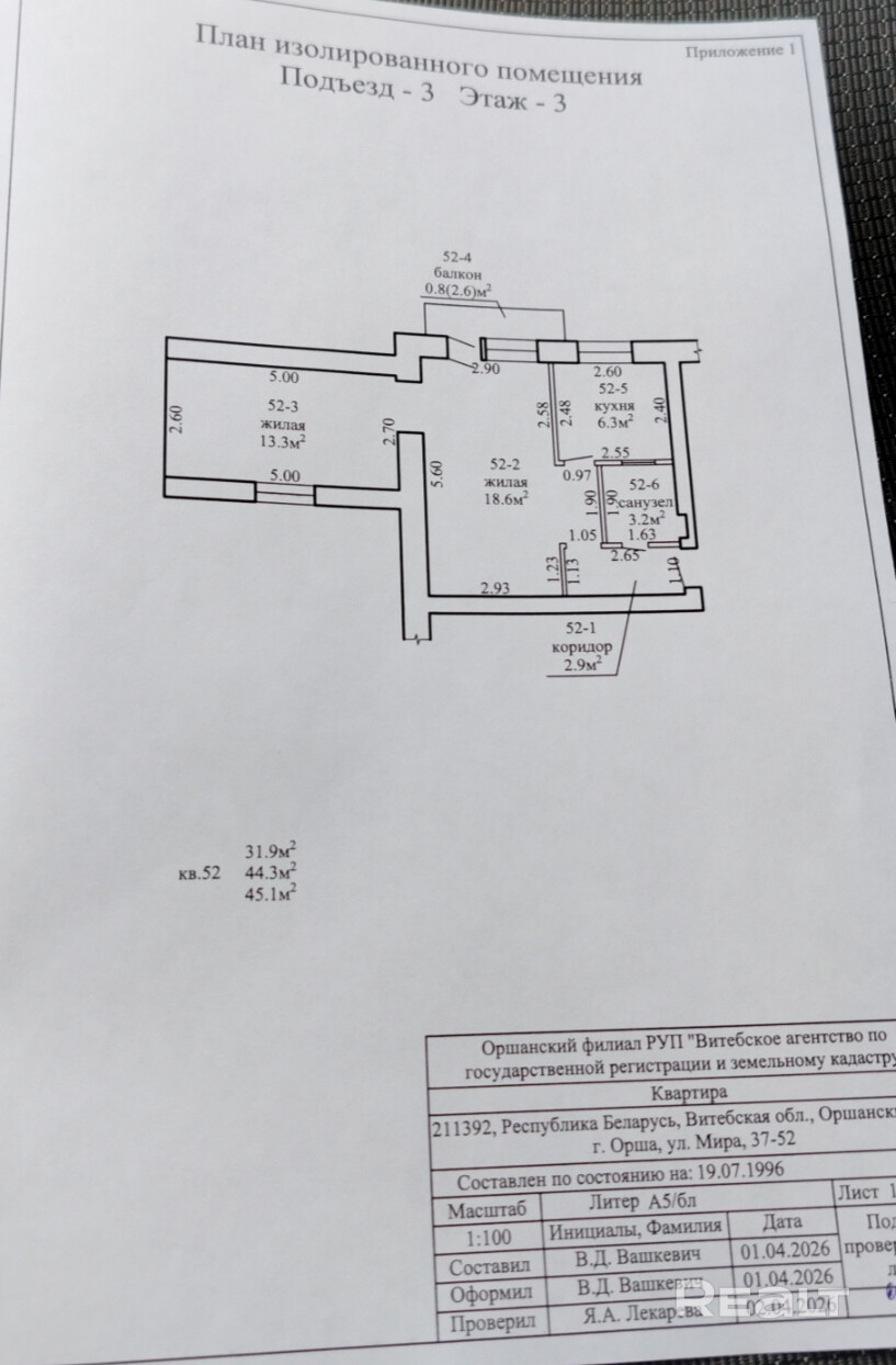 Квартира расположена на3 этаже 5 этажного дома 1965 г. п. Площадь квартиры : общая площадь 44,3 м2, жилая 29,1 м2, кухня 6.5м2.