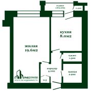 Общая площадь квартиры 36,3 м2, жилая 19,6 м2, кухня 8 м2.