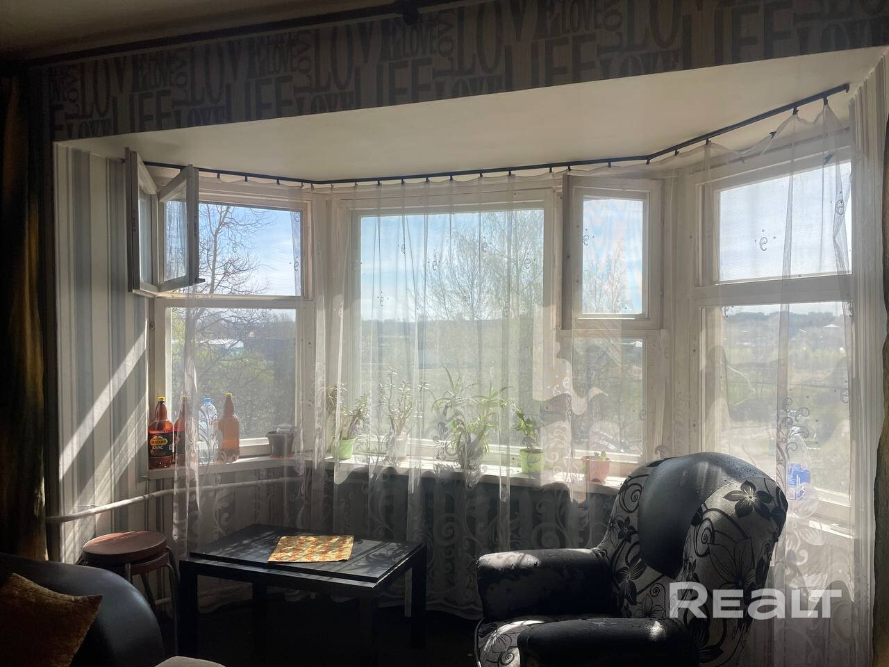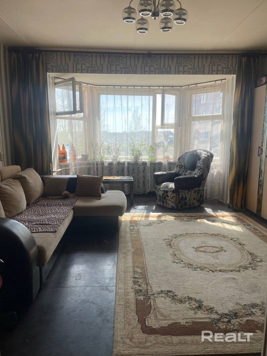 Квартира в обычном состоянии. В одной из комнат большое эркерное окно. Квартира находится в обычном состоянии, из мебели остается встроенная кухня. Входная металлическая дверь. Виды из окон на живописное место. Дом расположен в развитом районе — в шаговой доступности школа №5, детский сад, магазины, банки, городская баня и остановки общественного транспорта, что обеспечивает комфорт и удобство.