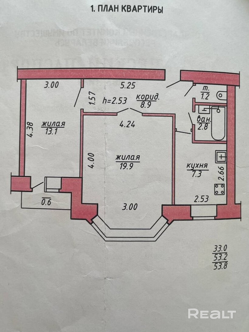 53.8 м²