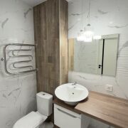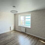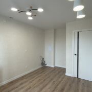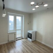 Окна ПВХ, входная металлическая дверь, ламинат во всей квартире. Выполнен перенос всей сантехники в санузле и уложена плитка. На лоджии - плитка. Никто не проживал!