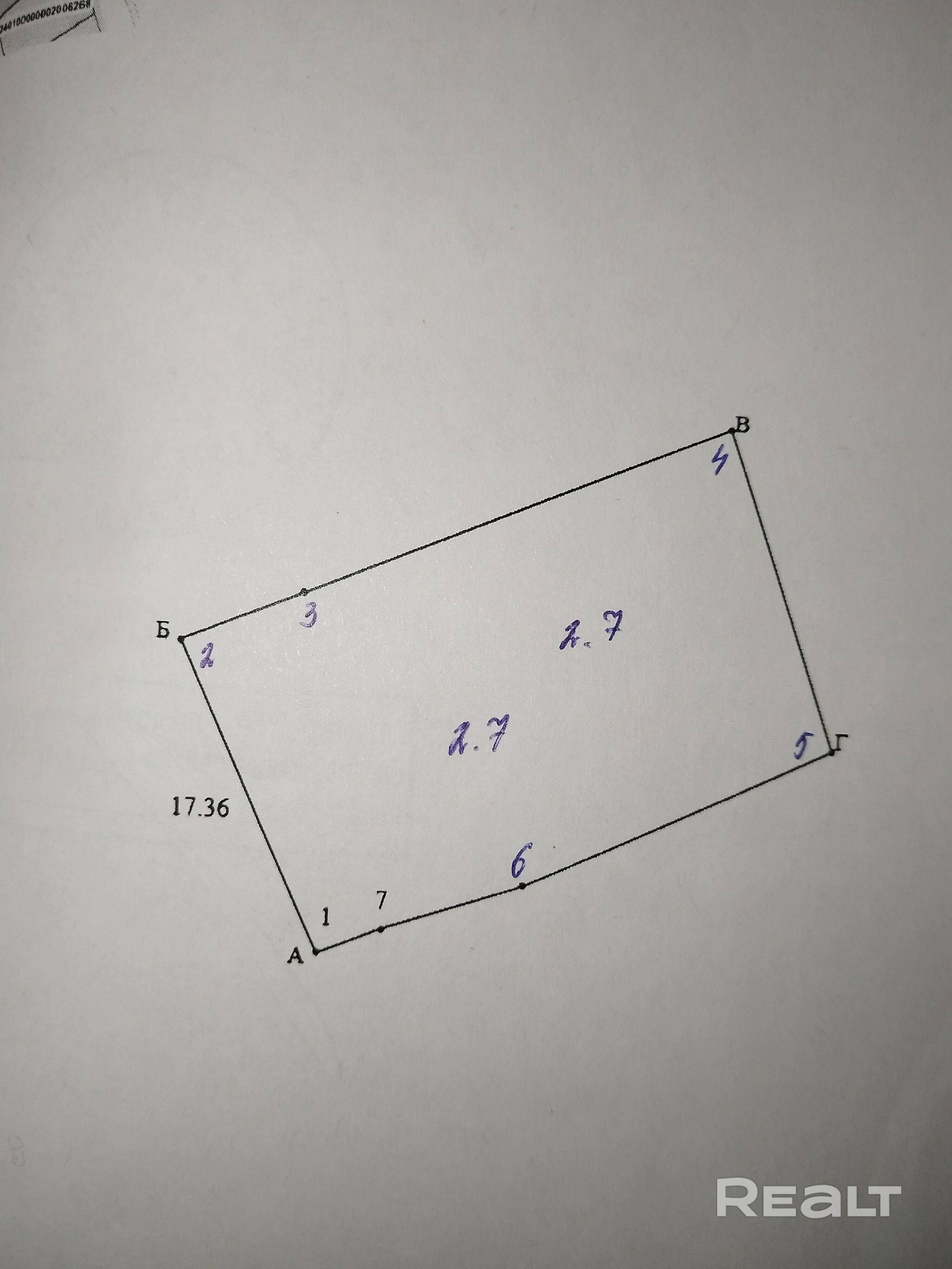 - Площадь участка