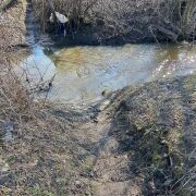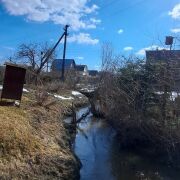 Высокий ровный участок, яблони, груша, плодово- ягодные насаждения, сразу за участком речка, свой электрический столб. Недалеко магазин и остановка общественного транспорта.