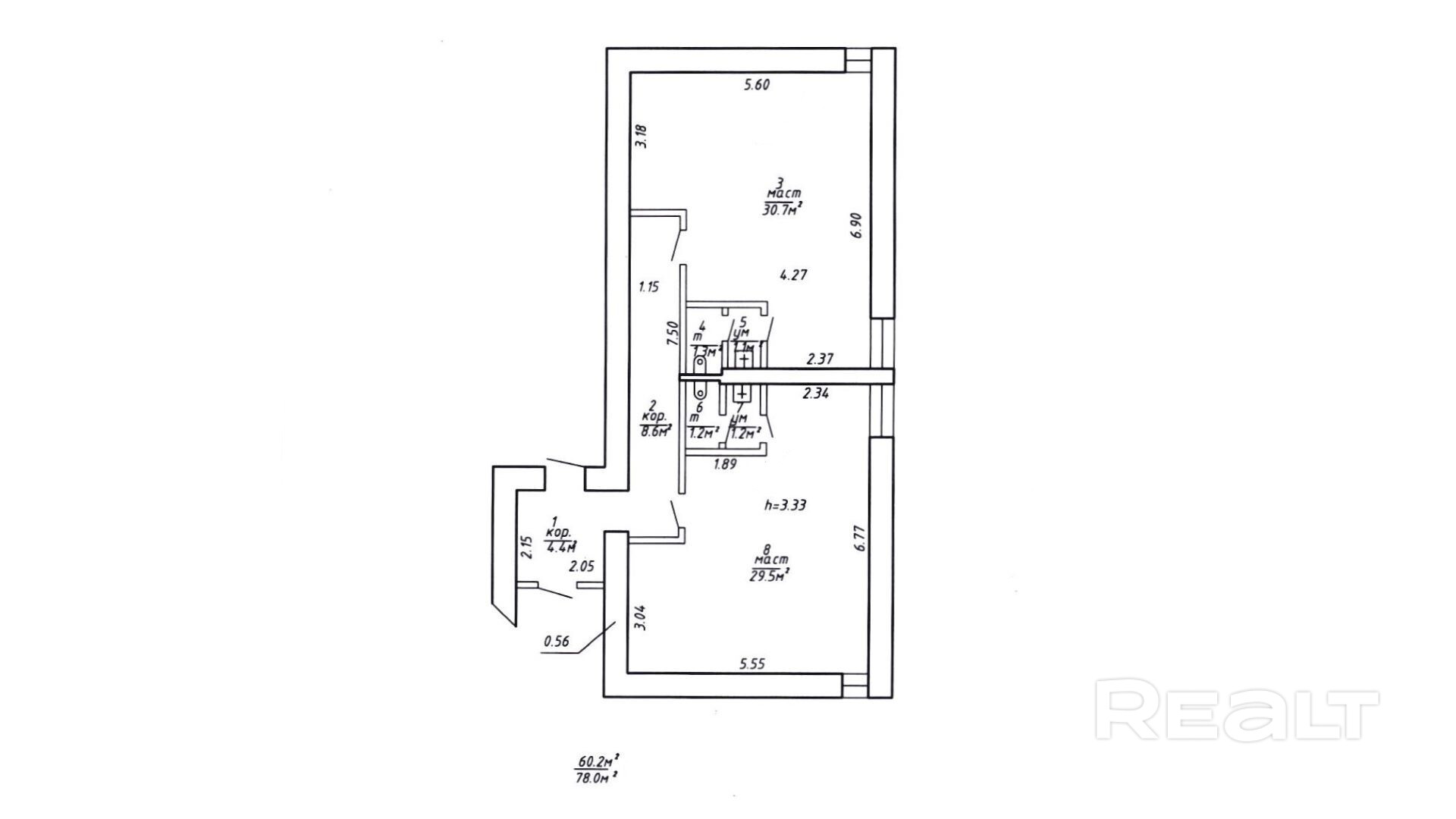 Помещение 78 кв с двумя отдельными комнатами по 30 кв. с санузлами.