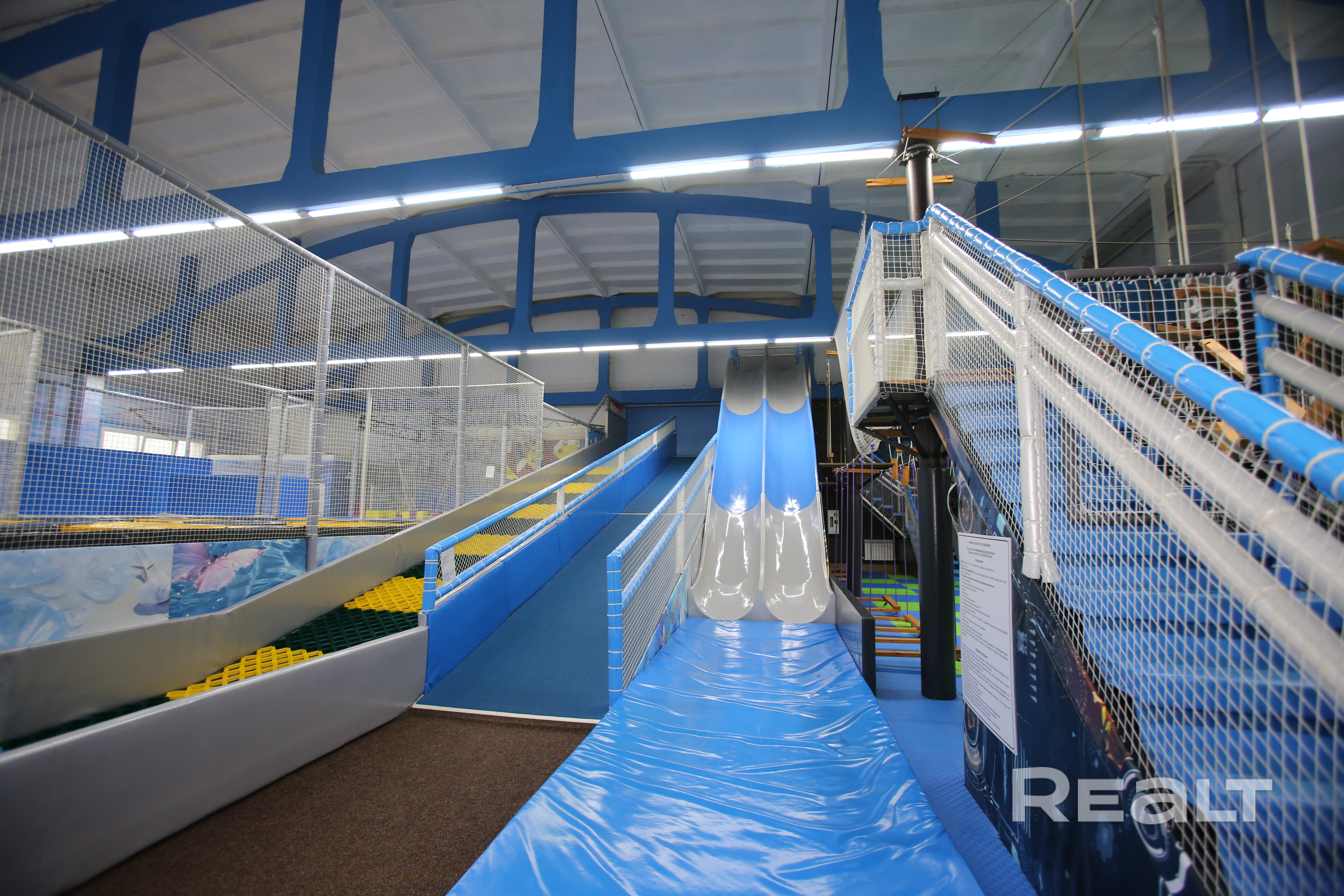 - Двухуровневый веревочный городок на 16 этапов: первый уровень для новичков и деток до 7 лет в сопровождении взрослых; второй уровень более сложный, установлен на высоте 2,5 метров из 10 этапов — для более ловких